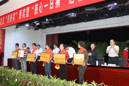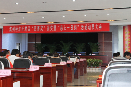 濱州傳媒網(wǎng)訊(記者郭瑩 通訊員李華)2011年5月26日上午,開(kāi)發(fā)區(qū)隆重舉行2010年度“慈善獎(jiǎng)”頒獎(jiǎng)和2011年度“慈心一日捐”活動(dòng)動(dòng)員大會(huì)。會(huì)議由開(kāi)發(fā)區(qū)黨工委委員、主任助理、公安分局局長(zhǎng)張愛(ài)國(guó)同志主持,黨工委書記、管委會(huì)主任姚和民同志到會(huì)并作重要講話,會(huì)議表彰了2010年度為慈善事業(yè)做出突出貢獻(xiàn)的單位和個(gè)人,區(qū)黨工委委員、管委會(huì)副主任、慈善總會(huì)會(huì)長(zhǎng)馬景澤同志接收了7家企業(yè)的捐贈(zèng),其中,福豪鋼材市場(chǎng)管理有限公司認(rèn)捐基金200萬(wàn)元,海得曲軸有限責(zé)任公司認(rèn)捐基金200萬(wàn)元,華晨新型建材有限公司認(rèn)捐基金100萬(wàn)元,中大兆華牧業(yè)科技有限公司認(rèn)捐基金100萬(wàn)元,金河房地產(chǎn)開(kāi)發(fā)有限公司認(rèn)捐基金100萬(wàn)元,